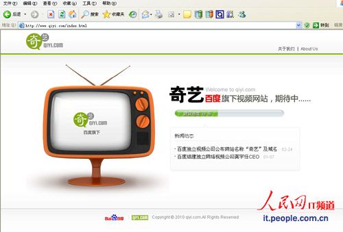 人民网2月24日讯 今天,百度独立网络视频公司正式公布品牌中文名称"奇艺",网站英文域名为“www.qiyi.com”。这是奇艺网自成立后首次正式公布公司的进展。奇艺CEO龚宇透露,奇艺在各方面的筹备工作非常顺利,网站计划于3月份上线。
