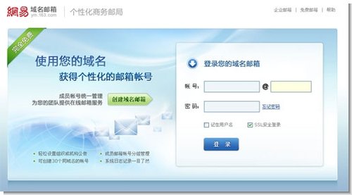 网易推出的这项服务是“完全免费”的,主要的功能和特点有:轻松设置组织或机构公告,成员邮箱账号分组管理,可创建30个同域名的账号,系统日志记录一目了然。域名邮箱还提供1G邮箱容量、附件大小支持50M,当使用浏览器发信时,一封信可以粘贴50M的附件,同样也可以接收来自别人发送给您的50M的附件。但域名邮箱暂不提供个人网盘。